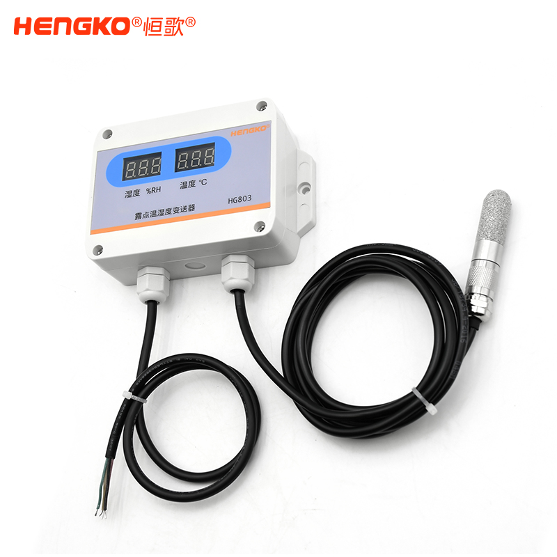 HG803分体系列温湿度变送器选用进口高精度测量单元,设备内置高精度温度补偿,稳定性高,漂移小,可重复性高;选用壁挂式外壳可轻松固定于墙体。数码管温湿度变送器具有显示功能,可实时显示当前温湿度。