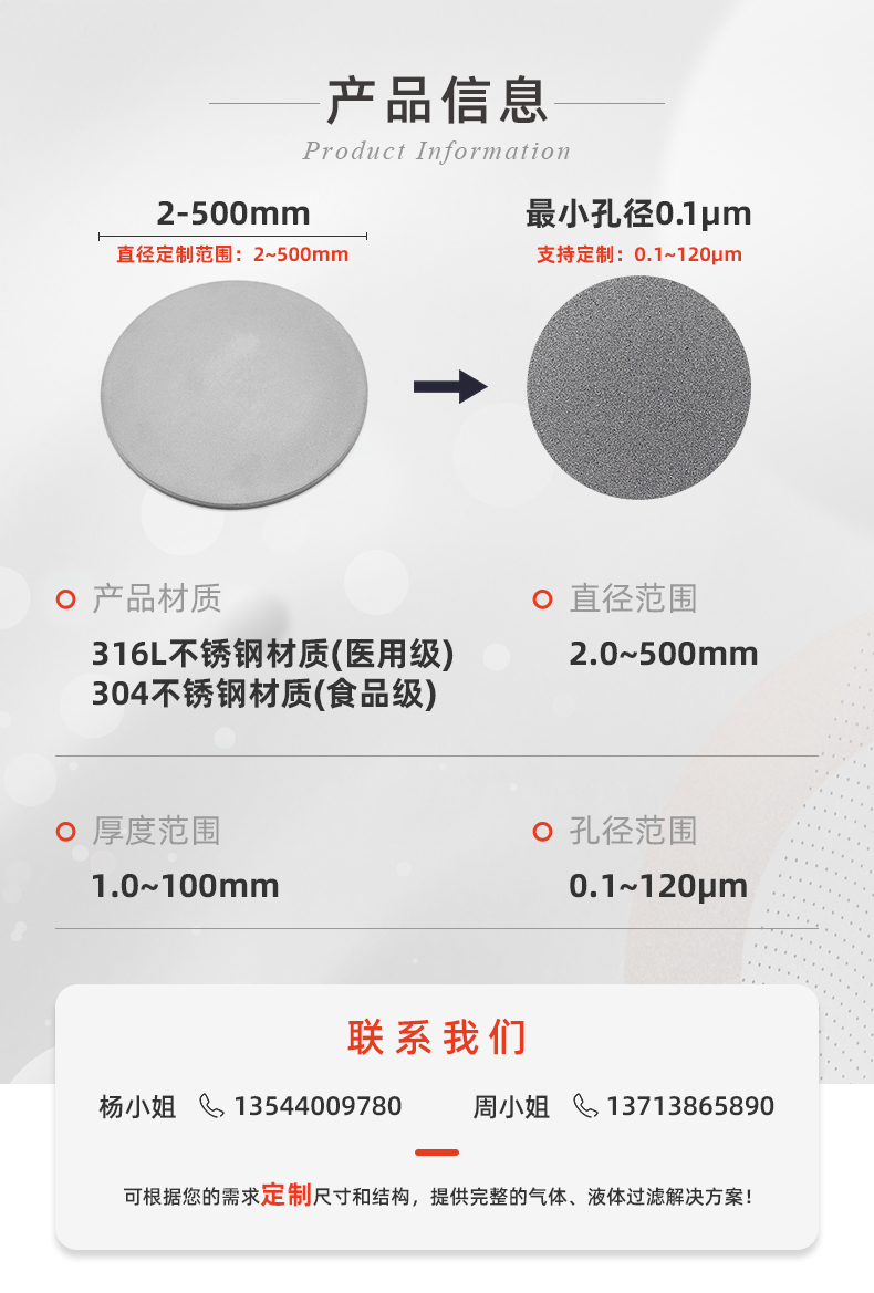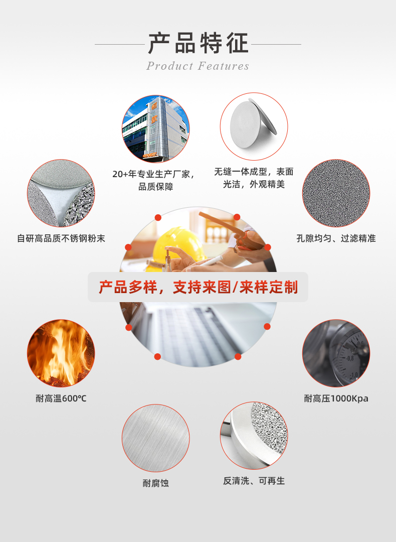 恒歌金属多孔材料过滤片,是由316L不锈钢粉末经过高温烧结通过模具压制成型,采用了独特的技术,严格遵守控制生产工艺。使其具有这机械性能强,耐高温,耐腐蚀,抗氧化,孔隙分布均匀透气性优秀,可清洗再生,可机械加工焊接等特点。该滤芯一般为片状,管状,杯状,板状,滤棒,可结各种形状大小规格皆可定制。