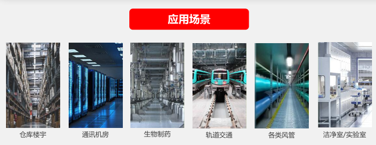 广泛应用于通讯机房、仓库楼宇、畜牧养殖、药材基地、花卉养殖、造纸、纺织、烟草、农业温室大棚、水泥养护室、档案文物保存、药品阴凉柜、配电柜、隧道工程、轨道交通、暖通空调、烟气管道、工业废气排放等需要温湿度测量的场景。