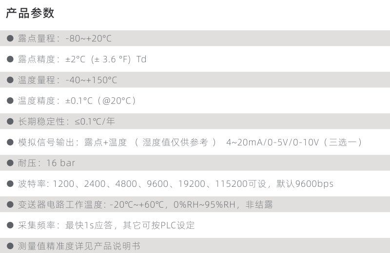 HG808-S系列在线露点仪根据工业应用中不同露点量程需求设计,以应对极其干燥的环境下,对气体中的水分进行感知分析,露点量程可达-80~20℃,适合于需要控制极低湿度的工业应用环境中的低露点数据的测量。