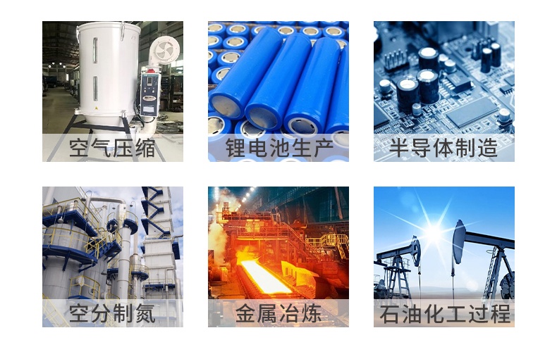 电子行业保护性气体、制冷剂、混合气体微量水分、金属冶炼、石油化工过程、天然气处理等领域。