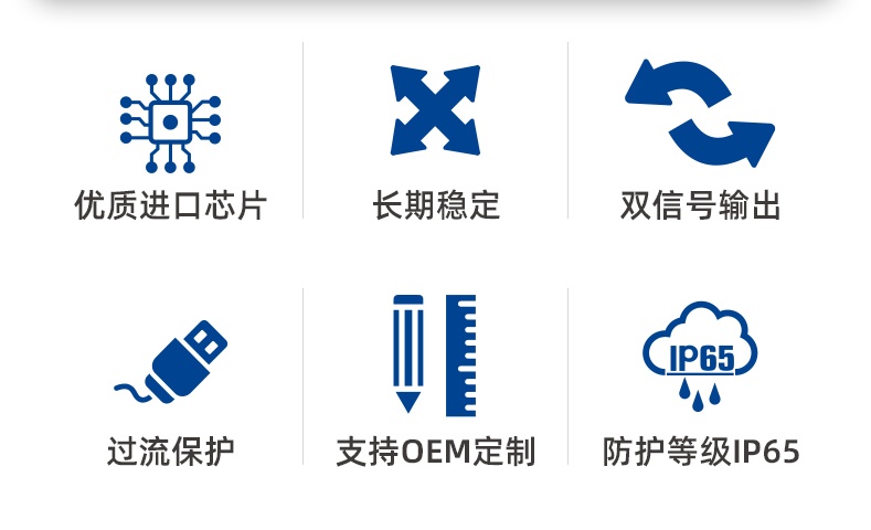●直流供电:10-30V DC (0-10V输出型需采用DC24V供电,其它推荐12V供电)