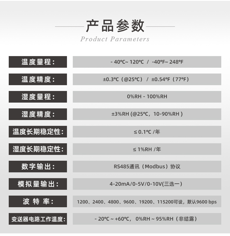 ●数字信号输出型,温度默认摄氏度℃单位,也可选择定制华氏度℉单位