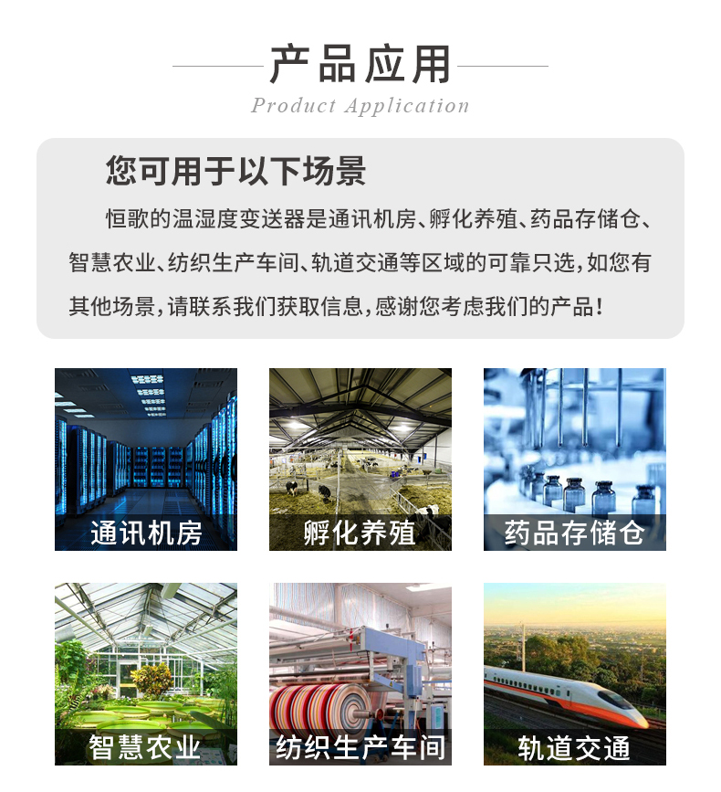 HG803系列温湿度变送器选用进口高精度测量单元,设备内置高精度温度补偿,稳定性高,漂移小,可重复性高;选用壁挂式外壳可轻松固定于墙体。数码管温湿度变送器具有显示功能,实时显示当前温湿度。探头多种类型可选适用于不同现场,广泛适用于通讯机房,孵化养殖、药品存储仓以及楼宇自控等需要温湿度监测的场所。采用标准工业接口4-20mA\0-5V\0-10V模拟量或者RS485数字信号输出,可接入现场数显表、PLC、变频器、工控主机等设备。安全可靠,外型美观,安装方便。